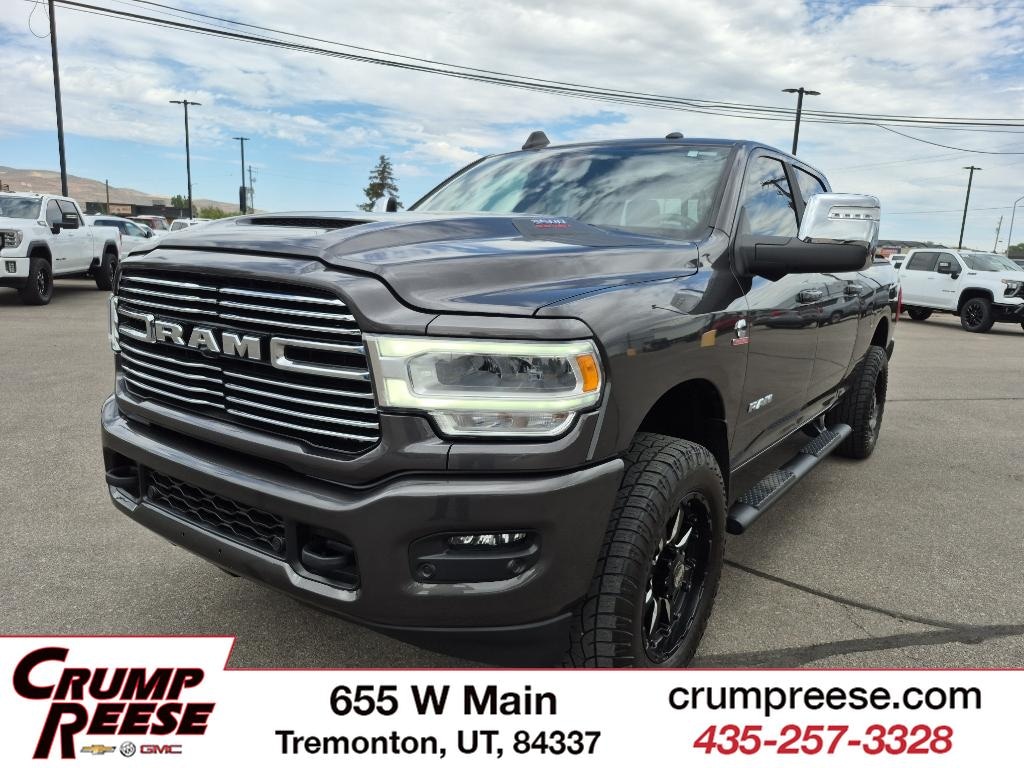 Quick Order Package 21H Laramie. Safety Group: Adaptive Cruise Control with Stop; Adaptive Steering System; Full Speed Forward Collision Warning Plus; Lane Keep Assist. Sport Appearance Package: LT285/60R20E OWL On/off Road Tires; Center Hub; Body Color Grille Surround; Black Interior Accents; Sport Performance Hood; Sport Decal; 20" X 8" Polished Aluminum Wheels; ParkSense Front/rear Park Assist System. Towing Technology Group: Center Stop Lamp with Cargo View Camera; Surround View Camera System; Trailer Reverse Guidance. Laramie Level B Equipment Group: Google Android Auto; Rear Window Defroster; Blind Spot and Cross Path Detection; Rain Sensitive Windshield Wipers; LED Tail Lamps; Power Adjustable Pedals with Memory; Rear Power Sliding Window; Integrated Voice Command with Bluetooth; Connectivity - US/Canada; 12" Touchscreen Display; Auto Power-Folding Mirrors; GPS Navigation; GPS Antenna Input; Exterior Mirrors with Heating Element; Auto Dimming Exterior Mirrors; SiriusXM with 360L; Connected Travel and Traffic Services; Front LED Fog Lamps; Heated Second Row Seats; LED Reflector Headlamps; Mirror Running Lights; Foam Bottle Insert (door Trim Panel); Alexa Built-In; Apple CarPlay; Power-Adjustable Convex Aux Mirrors; Off-Road Information Pages; Forward and Reverse Utility Lights; Selectable Tire Fill Alert; Trailer Tow Pages; Disassociated Touchscreen Display; HD Radio; Uconnect 5 Navigation with 12.0" Display Radio; Power Heat Fold Memory Telescopic Mirrors; Exterior Mirrors with Supplemental Signals; Exterior Mirrors Courtesy Lamps; Remote Tailgate Release; 17 Speaker Harman/kardon Premium Sound; Auto High Beam Headlamp Control; Chrome Exterior Mirrors; Center Hub; Exterior Mirrors with Memory; Power Adjust Mirrors; 2nd Row in Floor Storage Bins; Power Telescoping Mirrors; Auto Dimming Exterior Passenger Mirror; Auto Adjust in Reverse Exterior Mirrors; ParkSense Front/rear Park Assist System. Auto Level Rear Air Suspension. Blind Spot and Cross Path Detection. Leather Trimmed Bucket Seats. 5th Wheel/gooseneck Towing Prep Group. Center Stop Lamp with Cargo View Camera. Adaptive Steering System. Granite Crystal Met CC. Cluster 12" TFT Color Display. MOPAR Front and Rear Rubber Floor Mats. **Equipment listed is based on original vehicle build and subject to change. Please confirm the accuracy of the included equipment by calling the dealer prior to purchase.**